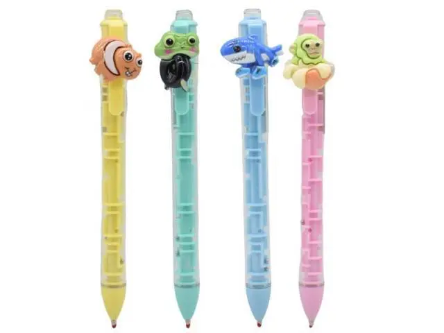 Lapicera retráctil azul con laberinto 14cm.