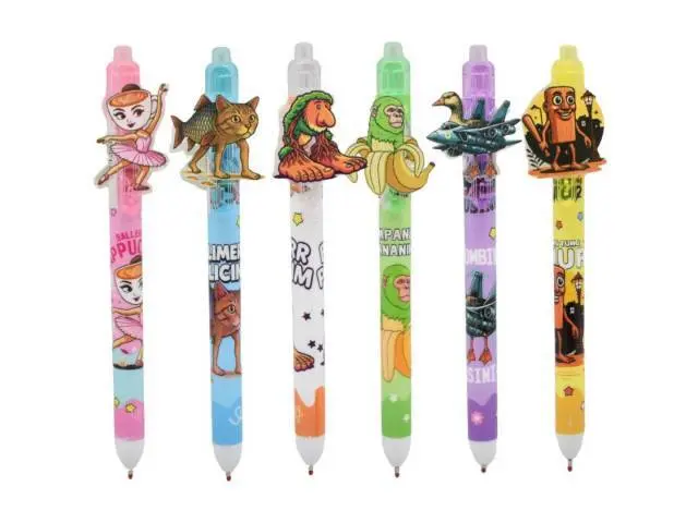 Lapicera retráctil azul con personajes 14cm.